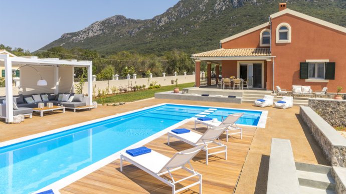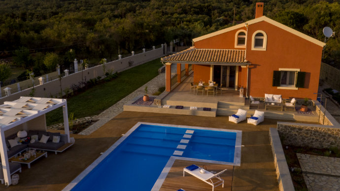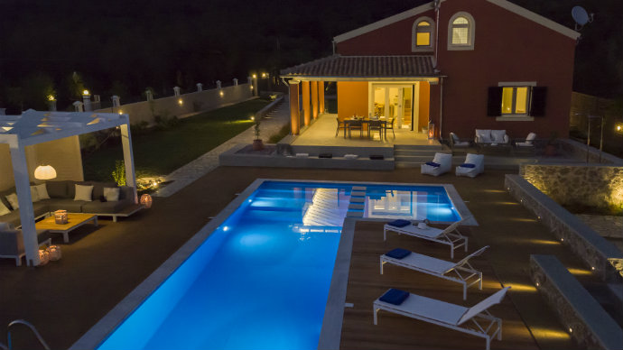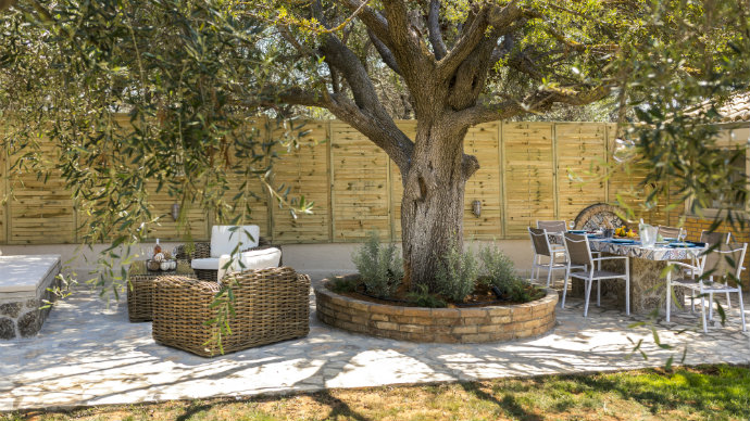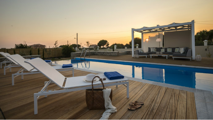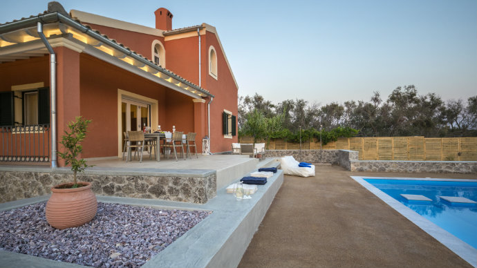 In a land area of 2,000m² , a 134 m² Villa and a 20 m² bungalow, built with eco - friendly materials and standards, spread over an area of 2 acres, offering a living environment characterised by elegance and comfort. Fully furnished and equipped can accommodate up to 4 people, plus 2 additional guests in a stylish bungalow. The pool is surrounded by the best outdoor furniture come together to form the perfect summer holiday setting, outdoor fireplace come to give its own touch to what can only be described as a work of art. The garden is filled with aromatic plants and herbs which tantalize your sense of smell giving you the impression you are in the best aromatherapy institute. The barbecue area is fully equipped and our private chef is ready to offer you a variety of Greek and not only tastes. Experience an overdose of luxury for all your senses and let us make your holiday a memorable experience.